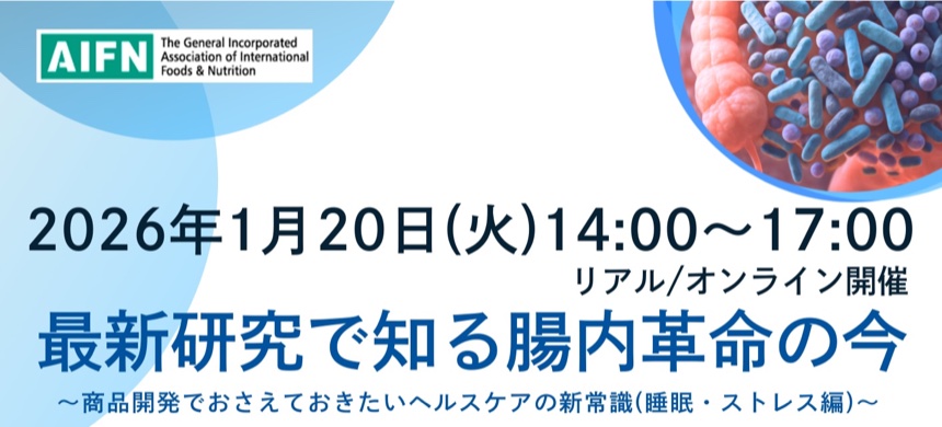 一般社団法人国際栄養食品協会(AIFN)はAIFNオープンカレッジ(AOC)にて第2回 最新研究で知る腸内革命の今(睡眠・ストレス編)と題して、2025年8月に開催した第1回「腸内革命の今」の第2弾として、今回は腸内環境とメンタルヘルスをテーマに開催します。